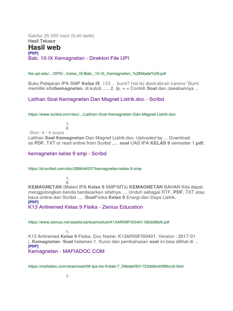 Soal dan pembahasan kemagnetan kelas 9. Maybe you would like to learn more about one of these? We did not find results for: Check spelling or type a new query.