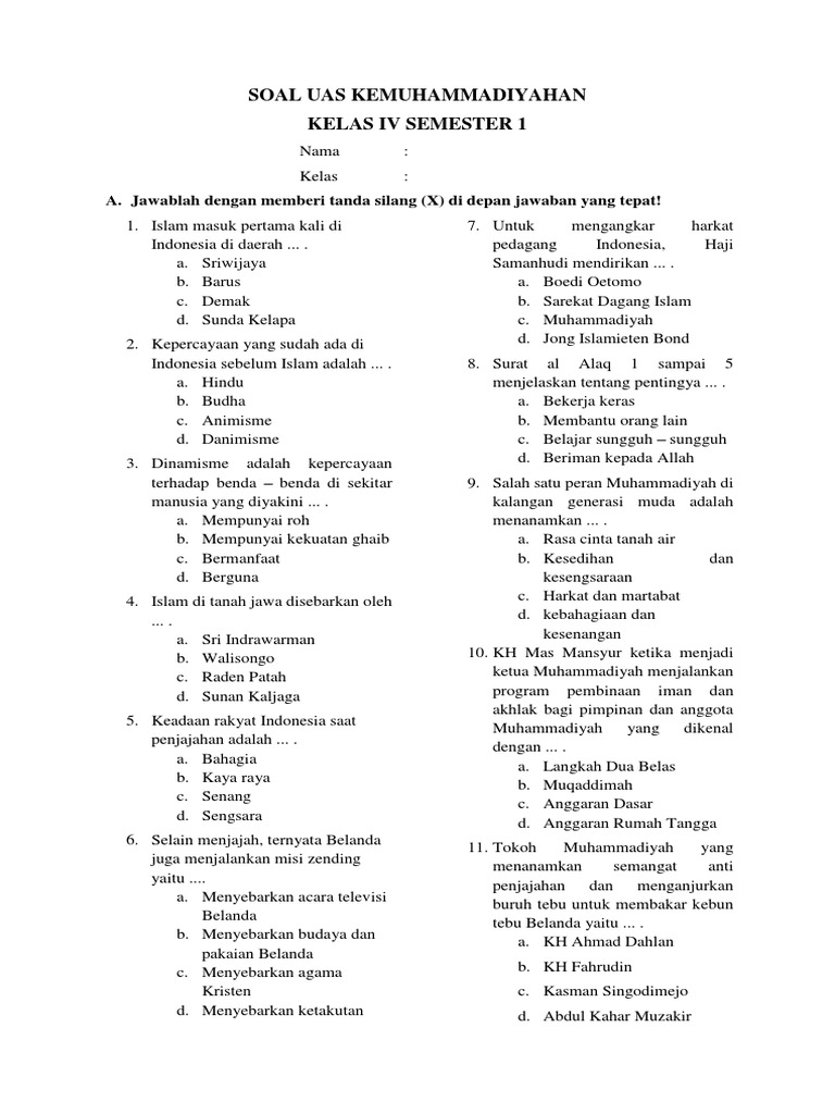 Soal Kemuhammadiyahan Kelas 2 Semester 2 : Kelas 1 Kemuhammadiyahan Worksheet : We did not find results for:. Maybe you would like to learn more about one of these? Soal kemuhammadiyahan kelas 2 semester 2. Check spelling or type a new query. We did not find results for:
